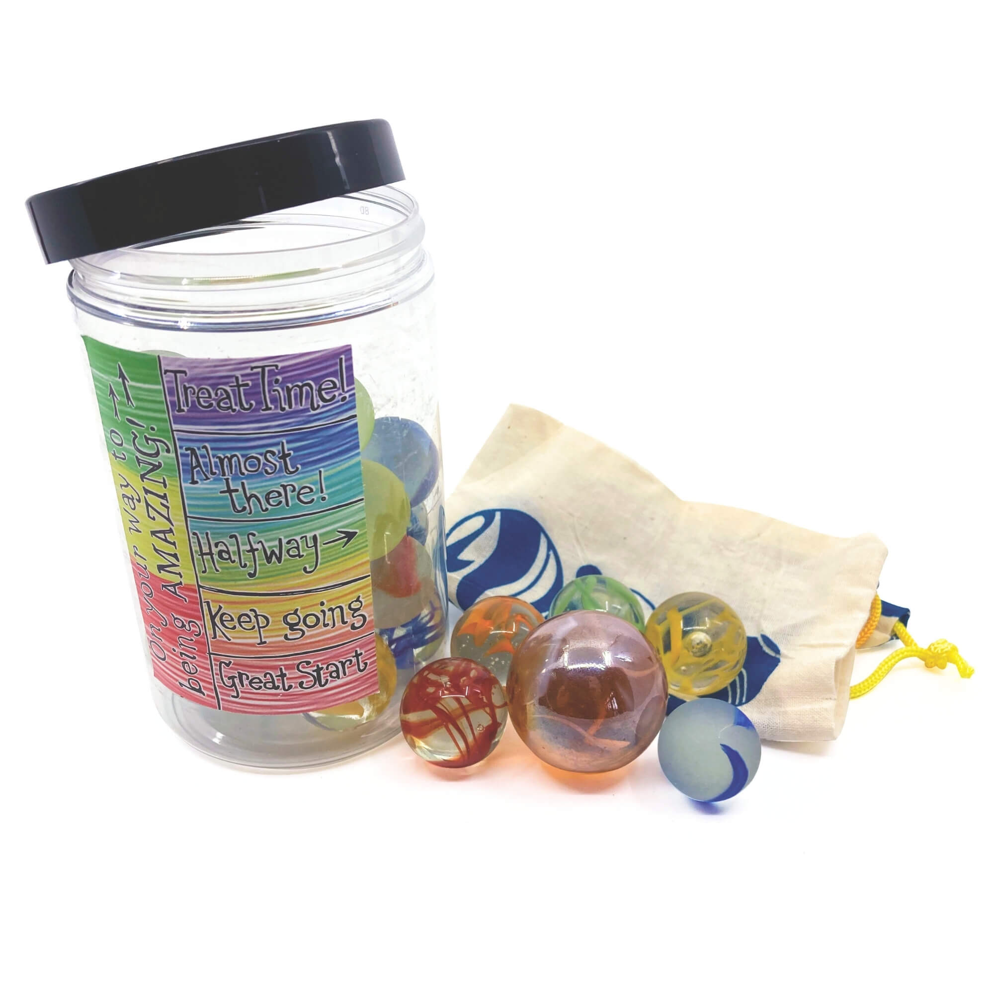 Un système de récompenses astucieux qui rend les bons comportements amusants, visuels et motivants. Les enfants gagnent leurs billes, une action positive à la fois, en remplissant progressivement leur bocal. À l’intérieur se trouvent un bocal solide, un bel assortiment de billes arc-en-ciel de différentes tailles ainsi qu’un sac en coton pour les ranger en toute sécurité. Simple, engageant et merveilleusement tactile, c’est une façon ludique d’encourager les bonnes habitudes et de célébrer les réussites du quotidien.